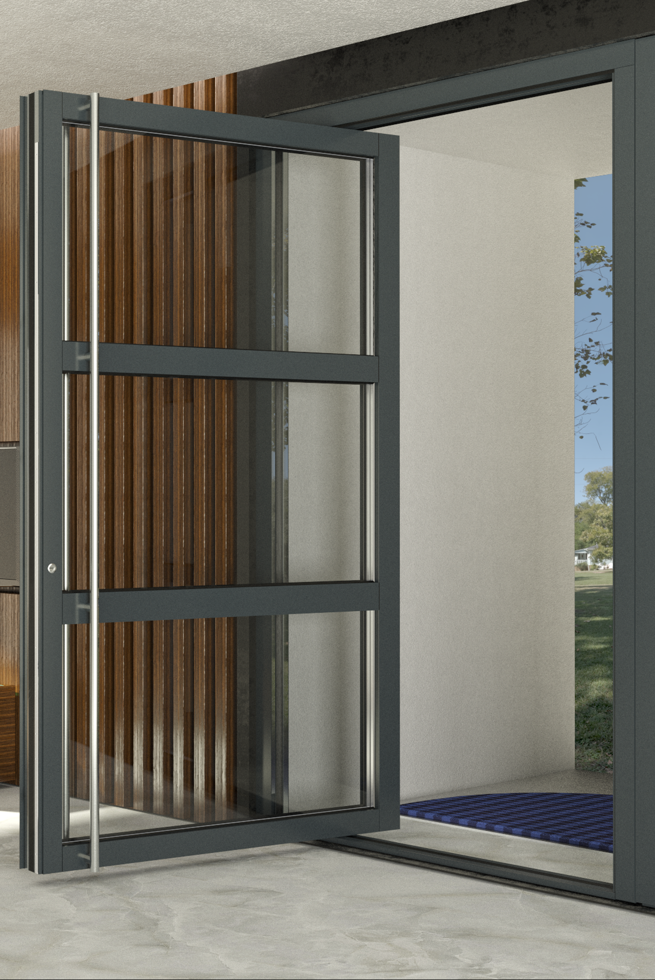 Make a statement with the S-700 Pivot Door Series, designed to pivot on two offset points for a dramatic entrance. Available in sizes up to 3 metres in height and 2 metres in width, with choices of wood, carbon fibre finishes, and sophisticated glass and LED details.